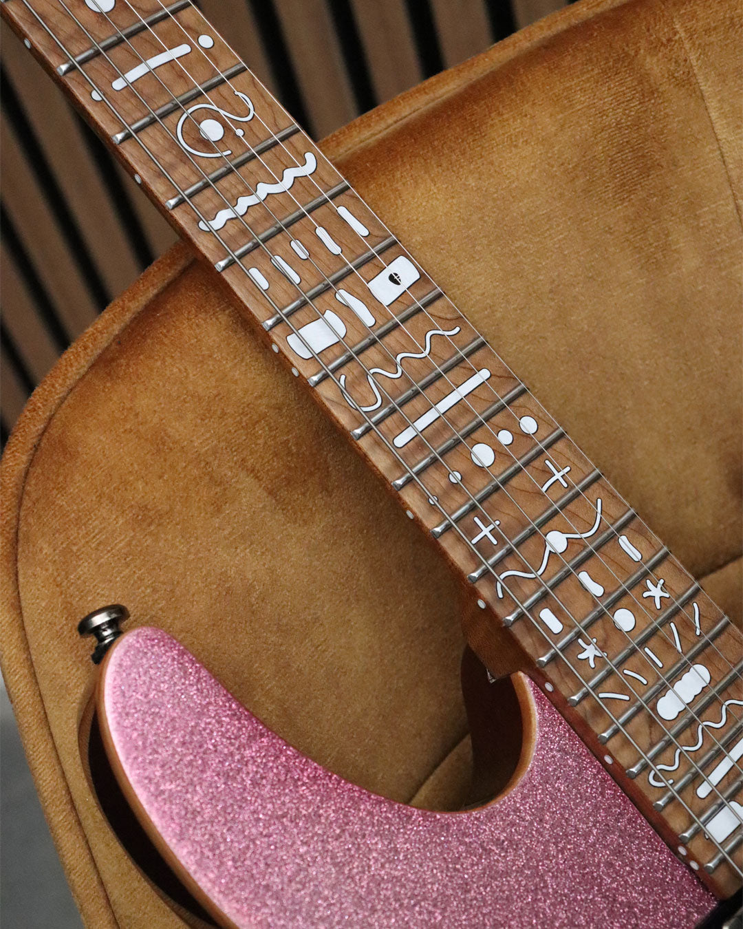 Before, your fretboard follows a familiar and orderly look with standard dot inlays. After you apply Insane, explosive shapes and chaotic motion take over, turning the fretboard into a visual storm of creativity. The design feels raw and energetic, making your instrument impossible to ignore while amplifying its bold, expressive character.