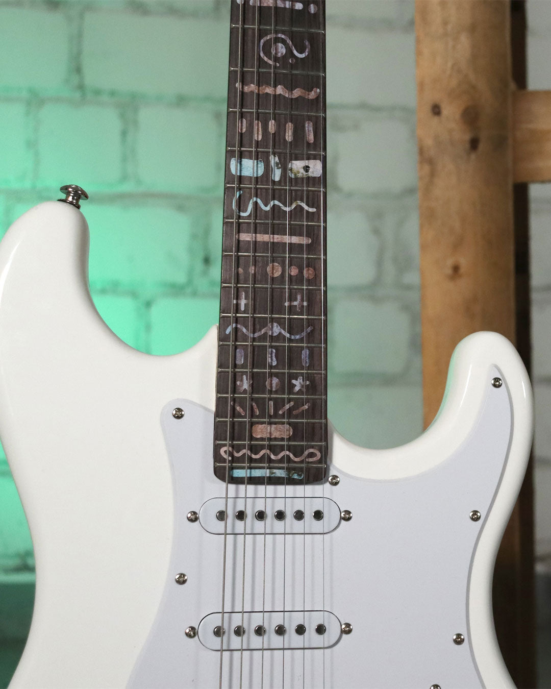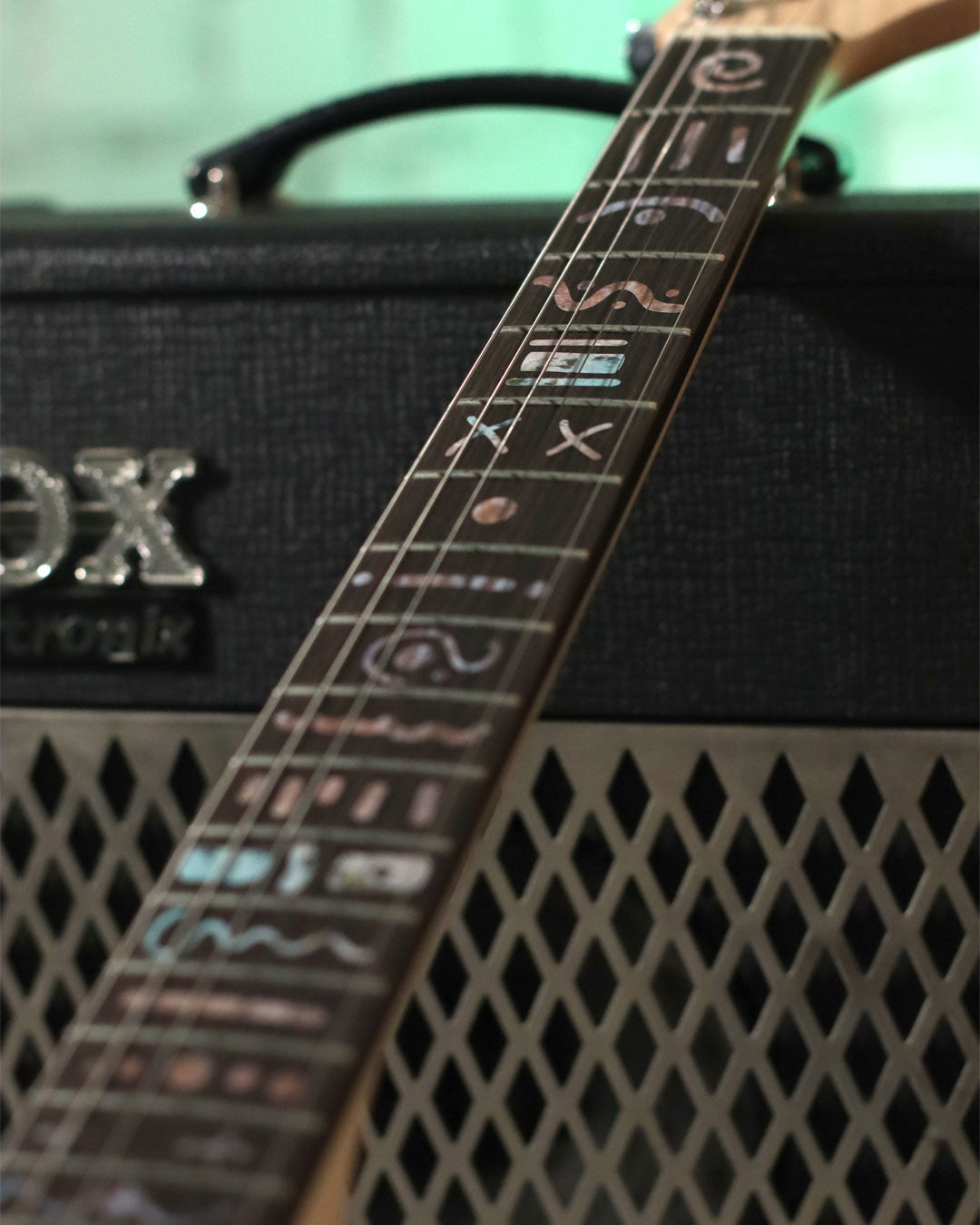 Lass dein Griffbrett mit dem Insane Design völlig ausflippen. Dieses chaotische, überdimensionale Muster breitet sich über deine Gitarre aus und verleiht ihr eine ungezähmte Persönlichkeit, die zu deinen wildesten Riffs passt. Die perfekte Wahl für Spieler, die das Unerwartete lieben und sich weigern, auf Nummer sicher zu gehen. Diese Inlays passen auf alle akustischen und elektrischen Gitarren mit einer Mensur von 628 bis 648 mm (24,75 bis 25,5″), einschließlich Bassgitarren. Wenn du dir bezüglich der Passform für deine Gitarre unsicher bist, melde dich bei uns und wir bestätigen es dir.