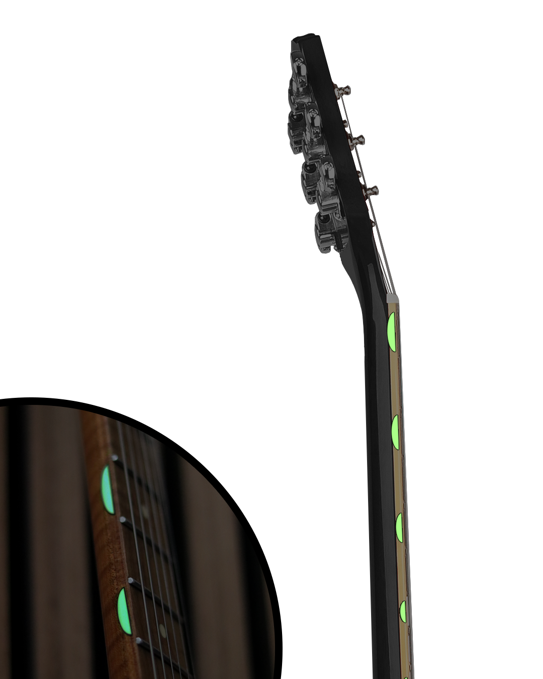 Für Musiker, die sich auf der Bühne bestmögliche Orientierung wünschen, bieten die Glow In The Dark Side Nails eine durchgehende Leuchtmarkierung. Im Gegensatz zu herkömmlichen Punkten erstrecken sich diese Markierungen über den gesamten Bund und sorgen so für maximale Sichtbarkeit aus jedem Blickwinkel. Sie laden sich schnell unter natürlichem oder künstlichem Licht auf und leuchten stundenlang hell, sodass du immer den Überblick behältst, egal wie dunkel es auf der Bühne wird. Jedes Set enthält 11 leuchtende Side Nails, die für alle Gitarrentypen entwickelt wurden und für jedes Halsmaterial und jede Lackierung geeignet sind. Sie sind nicht nur funktional, sondern setzen auch ein markantes optisches Statement.