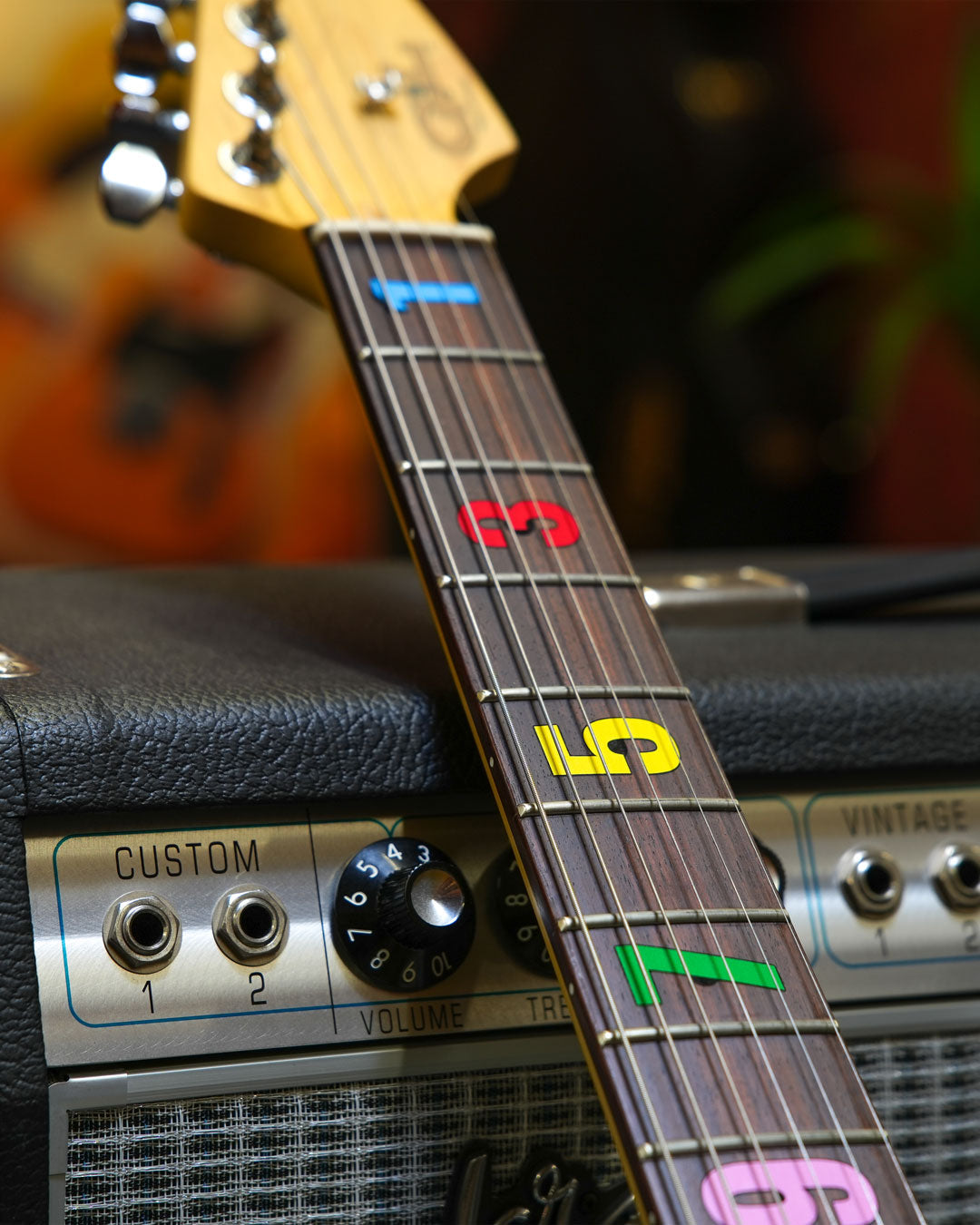 Bring your fretboard to life with the Numbers. Each fret pops with vibrant hues, turning simple numerals into a playful visual rhythm that energizes your instrument. The colorful design guides your fingers while giving your guitar an unmistakable personality. Made for acoustic and electric guitars with a 628 to 648 mm (24.75 to 25.5″) scale and also suitable for bass guitars, these inlays cover standard dots up to 6 mm (0.24″). Unsure if your guitar will fit? Send us your measurements and we’ll make sure it works perfectly.